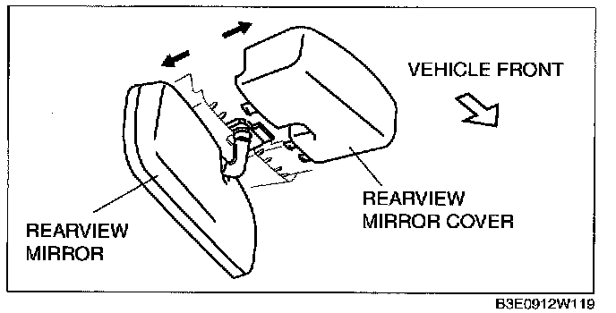 REAR VIEW MIRROR REMOVAL/INSTALLATION1. Insert a tape-wrapped flathead screwdriver into the notch and pry with the screwdriver in the direction shown by the arrow to remove the covers. (Vehicles with auto wiper system)