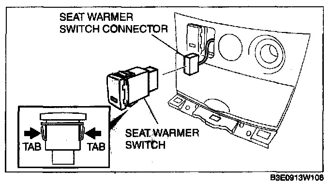 4. Squeeze the tabs of seat warmer switch and pull it outward to remove it.