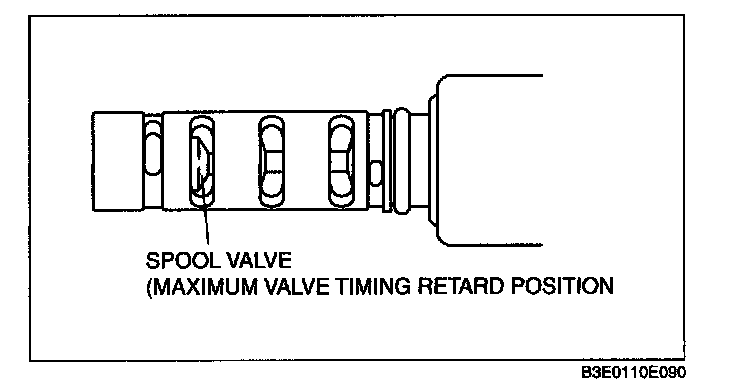 6. Stop applying battery positive voltage and verify that the spool valve returns to the maximum valve timing retard position.