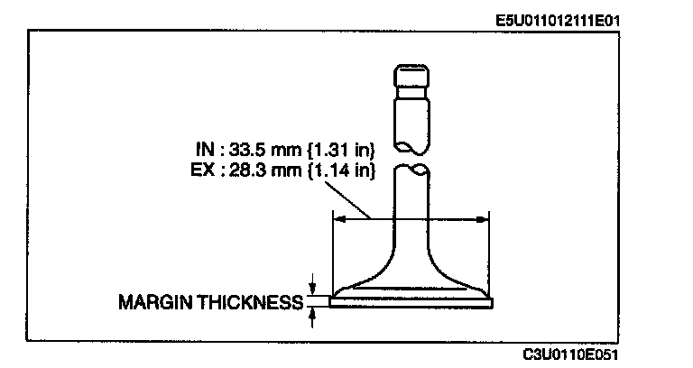 VALVE, VALVE GUIDE INSPECTION1. Measure the valve head margin thickness of each valve.