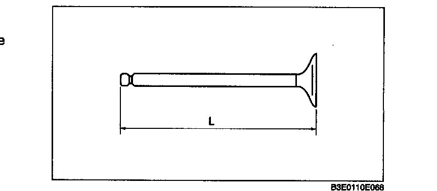 5. Calculate the valve stem to guide clearance by subtracting the outer diameter of the valve stem from the inner diameter of the corresponding valve guide. If it exceeds the specification, replace the valve and/or the valve guide.