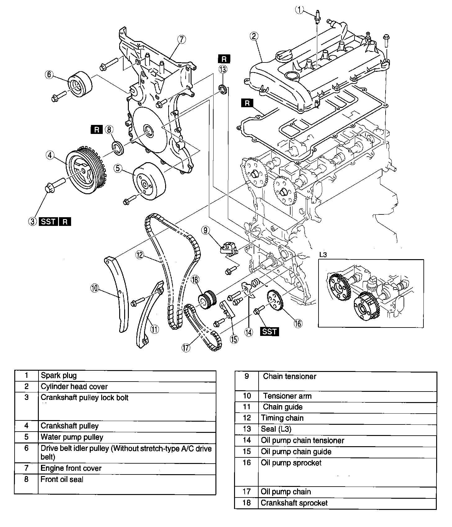 TIMING CHAIN DISASSEMBLY1. Disassemble in the order indicated in the table.