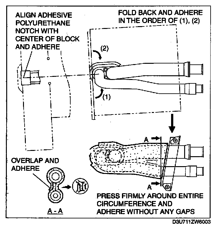 1. Assemble the adhesive polyurethane as shown in the figure.
