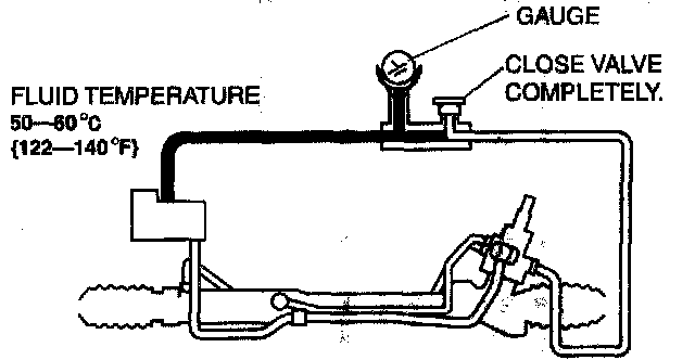 9. Turn the steering wheel fully to the left and right, then measure the fluid pressure generated at the gear housing.