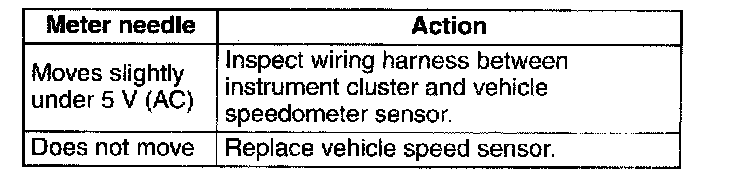2. Measure the voltage between the vehicle speed sensor terminals while the gear is turning.