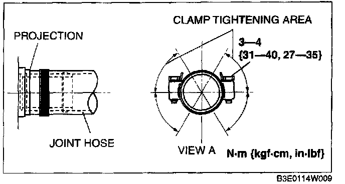 1. Install the breather hose and clamp as shown in the figure.