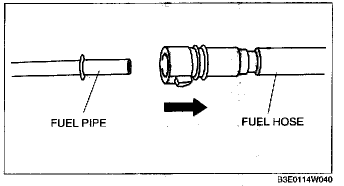 NOTE: The fuel hose can be removed by pushing it to the pipe side to release the lock.