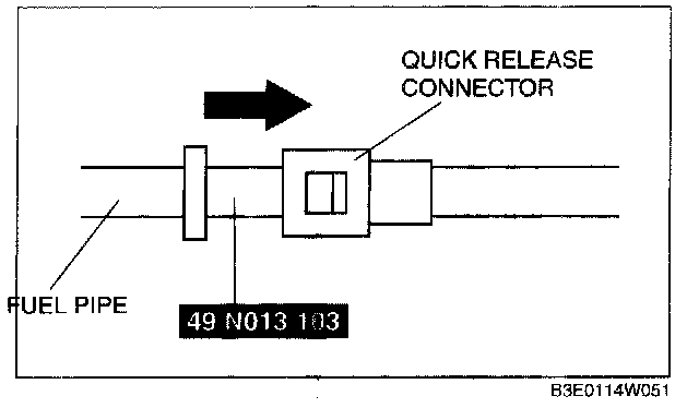 QUICK RELEASE CONNECTOR (FUEL SYSTEM) REMOVAL/INSTALLATIONWARNING: Fuel is very flammable liquid. If fuel spills or leaks from the pressurized fuel system, it will cause serious injury or death and facility breakage. Fuel can also irritate skin and eyes. To prevent this, always complete the "Fuel Line Safety Procedure", while referring to the "BEFORE SERVICE PRECAUTION".