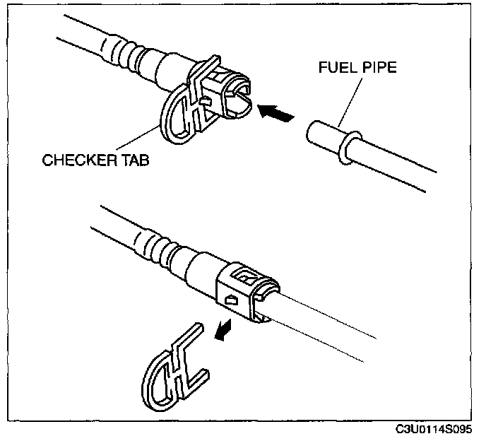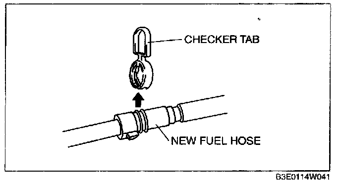 - A checker tab is integrated with the quick release connector for new fuel hoses and evaporative hoses. Remove the checker tab from the quick release connector after the connector is completely engaged with the fuel pipe.