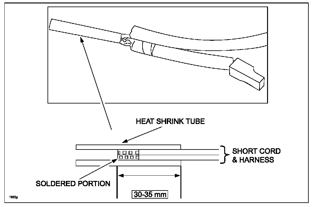 12. Cover the soldered wires with a heat shrink tube (length: 30 - 35 mm) as shown.