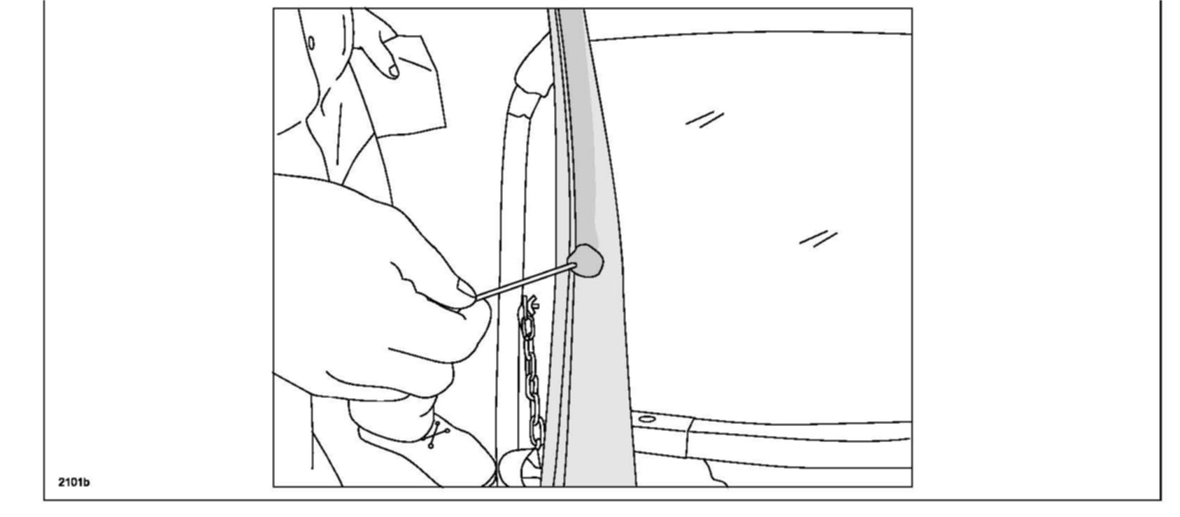 1. Before applying primer, take precautions to prevent primer from entering between the rear quarter glass and garnish (molding).