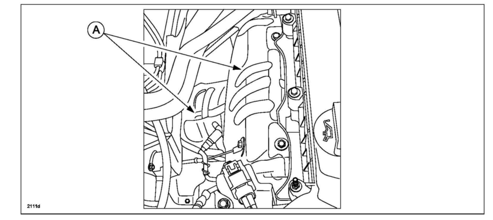 5. Loosen the bolts on the brackets (A) for the engine harness.