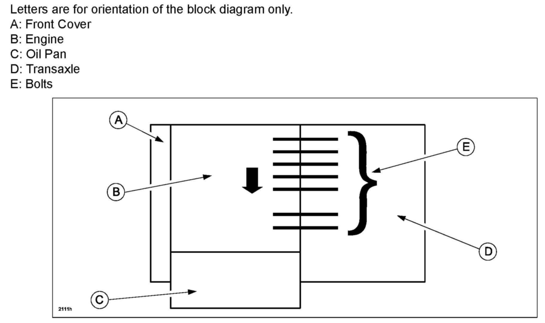 DO NOT loosen the bolts more than one turn (360 degrees), or the transaxle may get damaged.