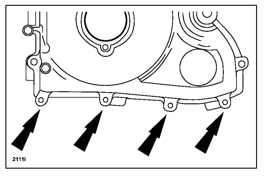 e. Tighten the 4 front cover bolts to 8.0-11.5 N.m (5.9-8.5 ft-lb) in the order shown.