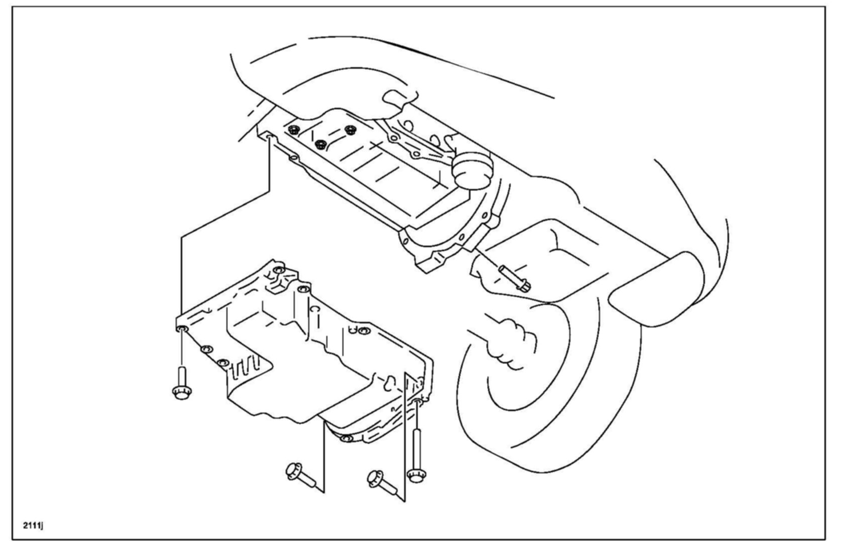 When reusing oil pan installation bolts, clean any old sealant from the bolts. Using bolts with the old seal adhering could cause cracks in the housing.