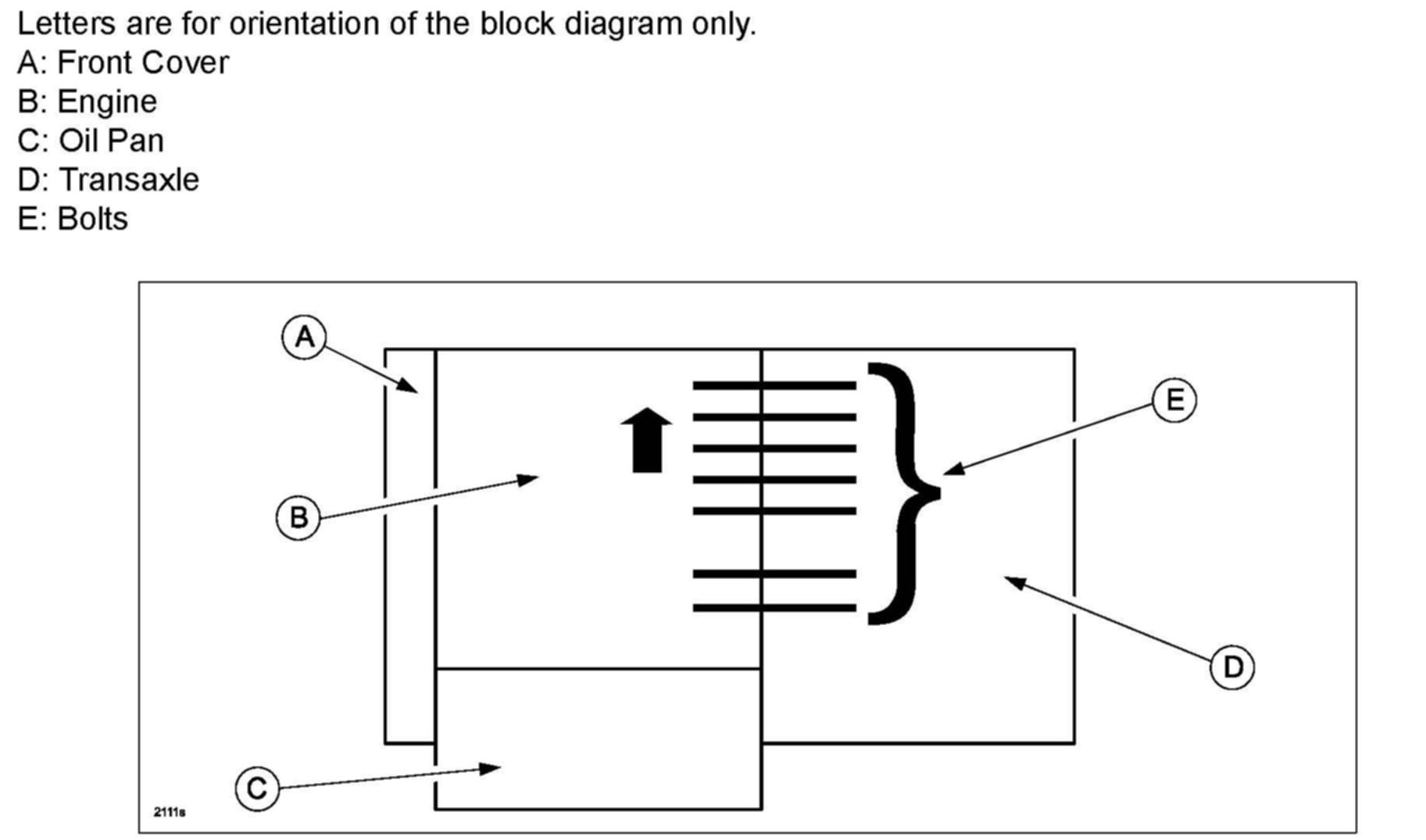 14. Before loosening the bolts securing the engine and transmission, put a mark each transaxle bolt and the transaxle (so you can determine when they have been turned one full turn), then loosen the bolts one full turn (360 degrees).