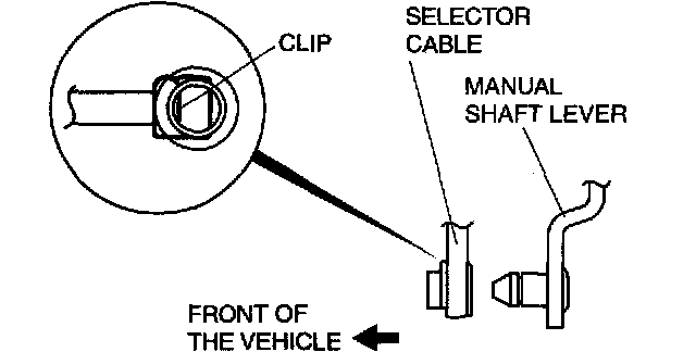 Note: Install the selector cable to the manual shaft cable with the clip side of the selector cable end facing the front of the vehicle.