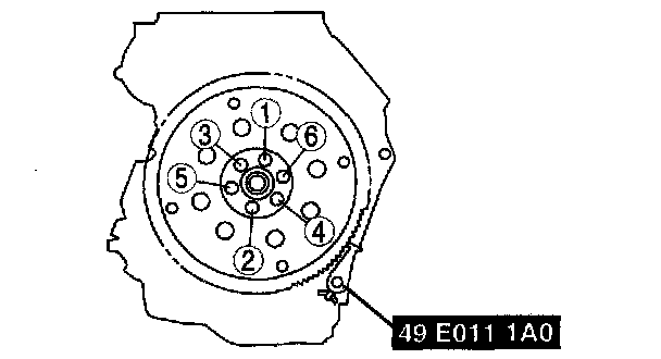 5. Tighten the drive plate mounting bolts in two or three steps in the order as shown in the figure.