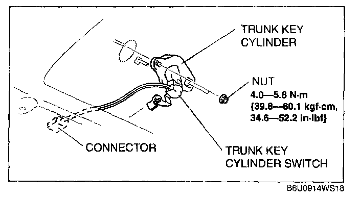 2. Remove the trunk key cylinder switch connector.