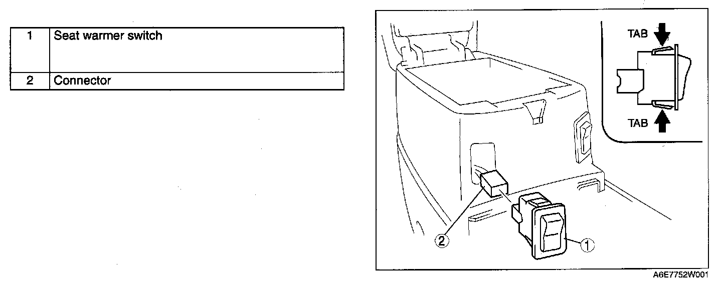 1. Squeeze the tabs of seat warmer switch and pull it outward to remove it.