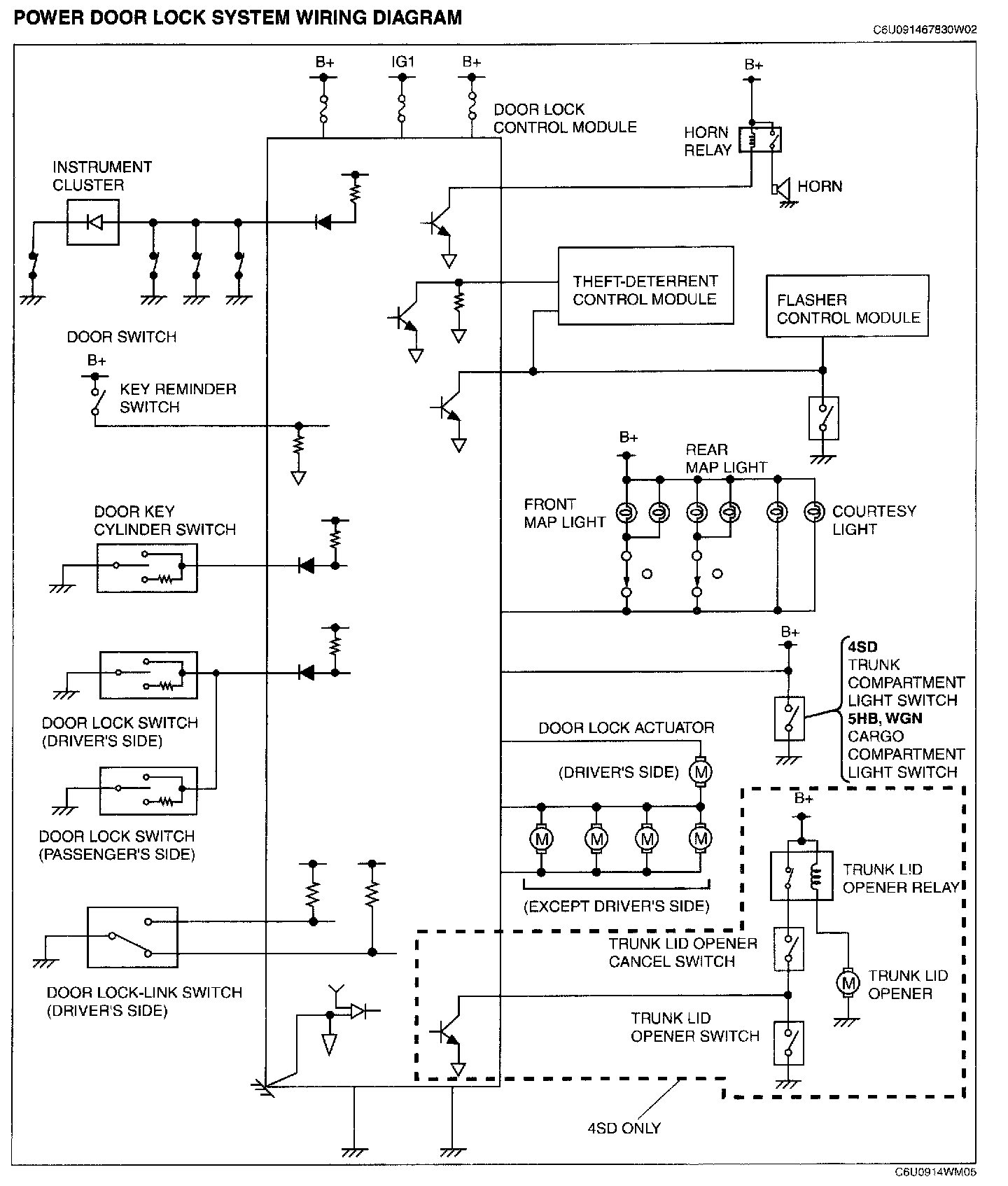 Power Door Lock System Wiring Diagram: