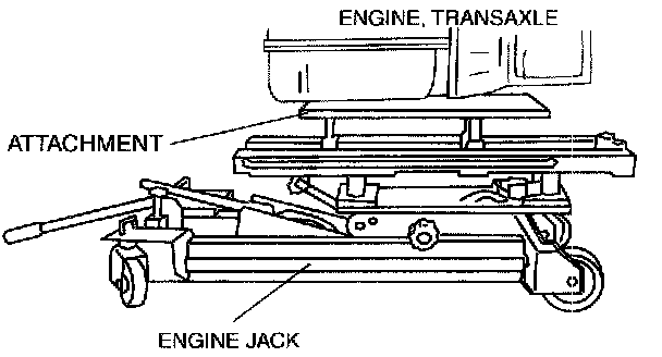 8. To firmly support the engine, first set the engine jack and attachment to the oil pan.