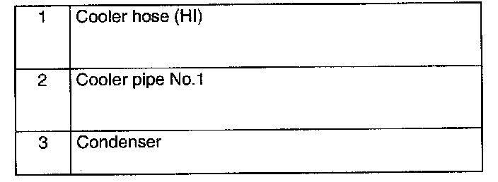 4. Remove in the order indicated in the table. Do not allow compressor oil to spill.
