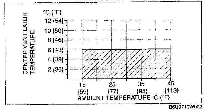 14. Verify that the intersection of the center ventilator temperature and the ambient temperature is in the shaded zone.
