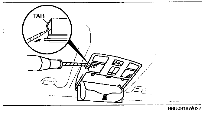 1. Insert a tape-wrapped flathead screwdriver into the gap between the headliner and the front map light