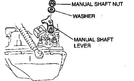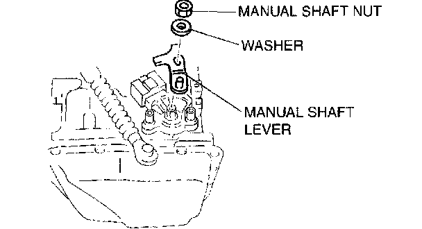 Caution: Do not use an impact wrench. Hold the manual shaft lever when removing the manual shaft nut, or the transaxle may be damaged.
