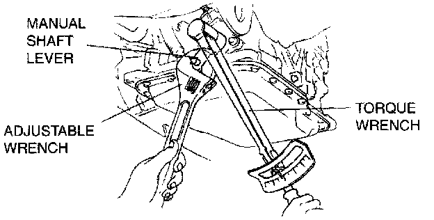 16. Set the adjustable wrench as shown to hold the manual shaft lever, and tighten the manual shaft nut.