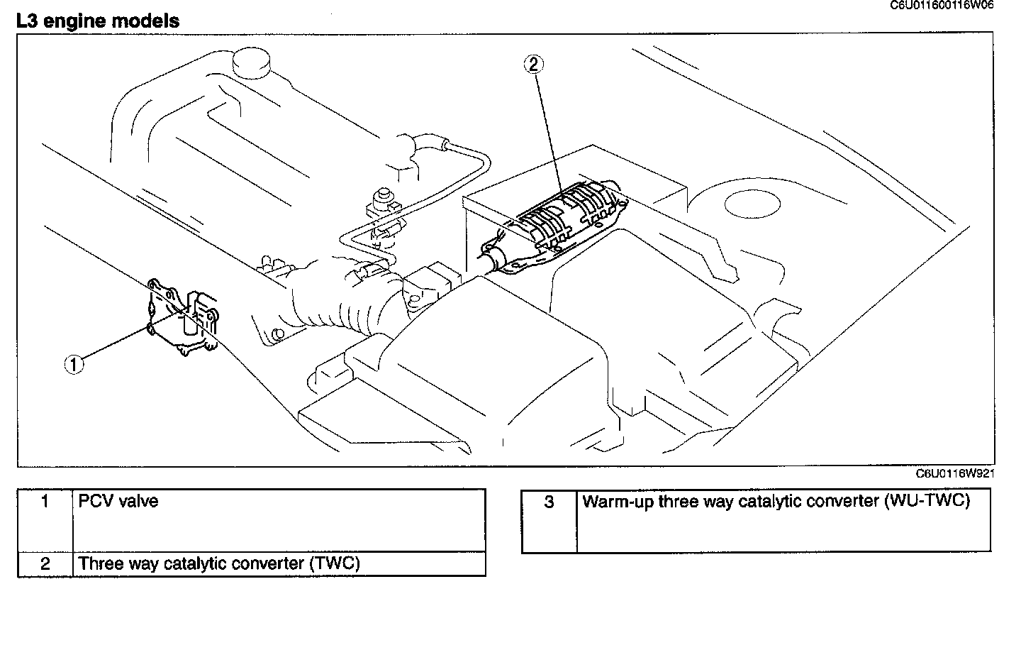 Positive Crankcase Ventilation (PCV) System And Catalytic Converter System Location Index: