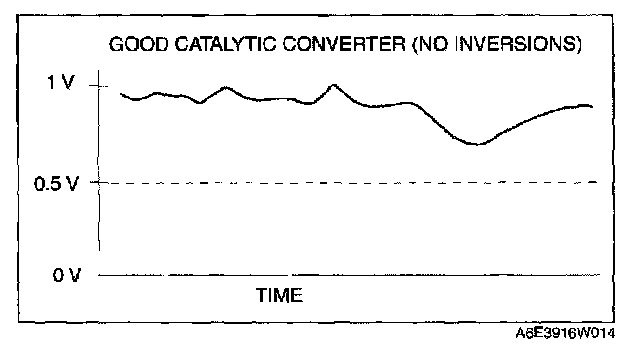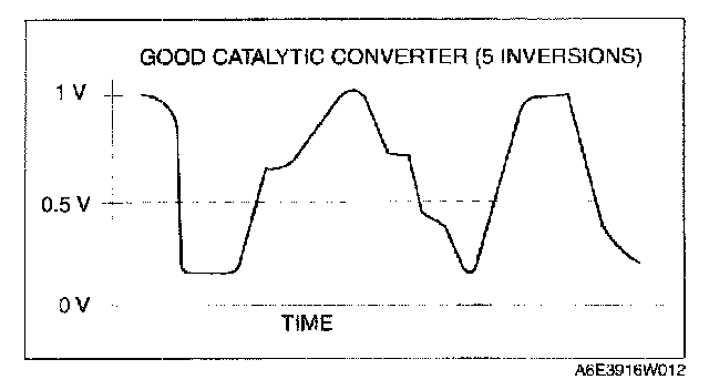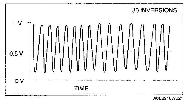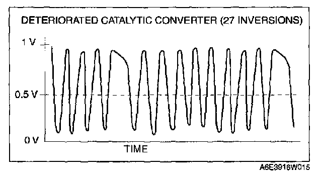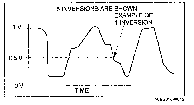8. Count the number of times (inversions) that the upstream HO2S graph line actually crosses the 0.5 V line.