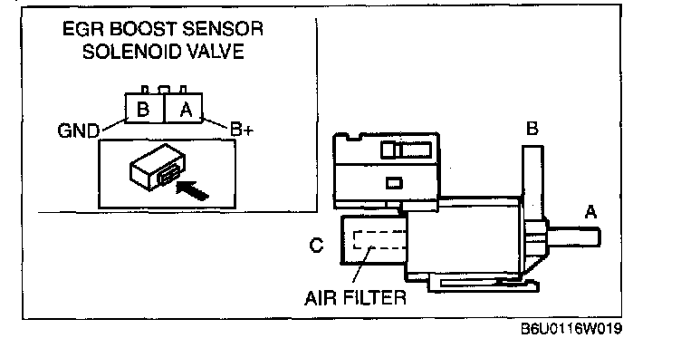 - If not as specified, replace the EGR boost sensor solenoid valve.