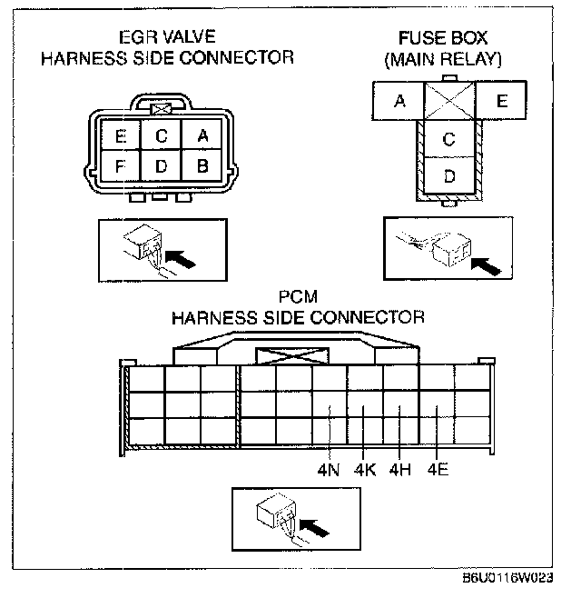- EGR valve terminal B (harness-side) and PCM terminal 4K