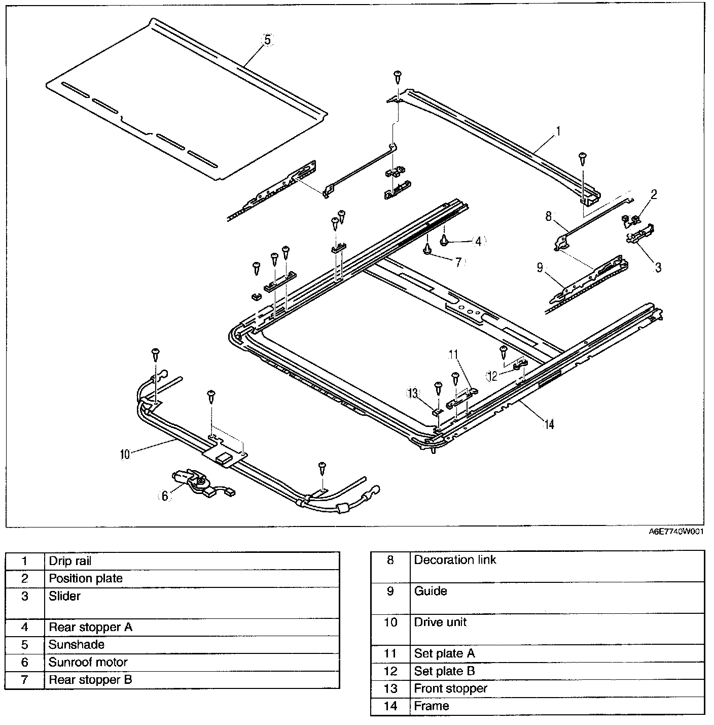 SUNROOF UNIT DISASSEMBLY/ASSEMBLY1. Disconnect the negative battery cable.