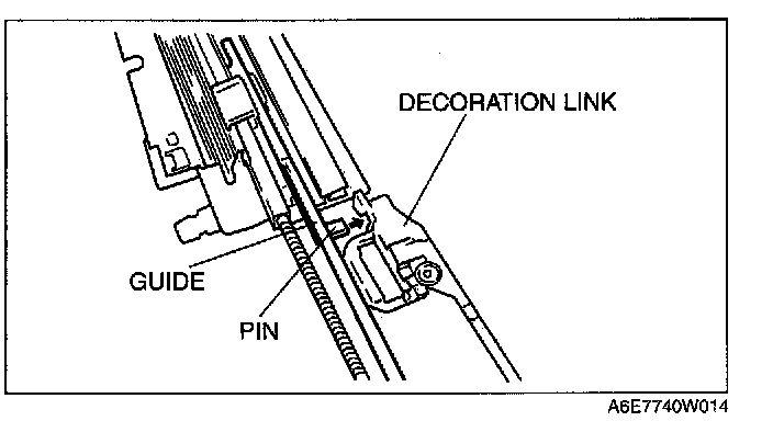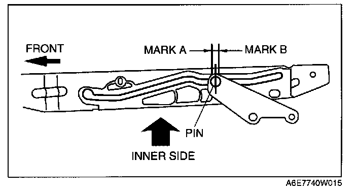 2. Move the guide by hand until the center of the pin comes between marks A and B.