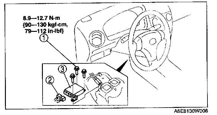 SAS CONTROL MODULE REMOVAL/INSTALLATIONWARNING: Handling the SAS control module improperly can accidentally deploy the air bag modules and pre-tensioner seat belt, which may seriously injure you. Read AIR BAG SYSTEM SERVICE WARNINGS before handling the SAS control module.
