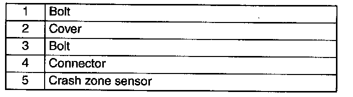 CRASH ZONE SENSOR REMOVAL/INSTALLATIONWARNING: Handling the crash zone sensor improperly can accidentally deploy the air bag module and pre-tensioner seat belt, which may seriously injure you. Read AIR BAG SYSTEM SERVICE WARNINGS before handling the crash zone sensor.