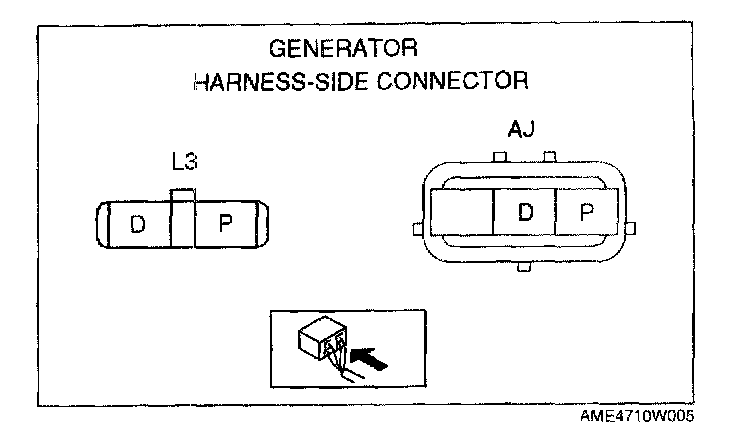 - If not as specified, inspect generator warning light, wiring harnesses between the battery and the generator warning light.