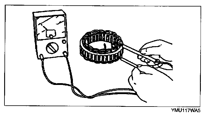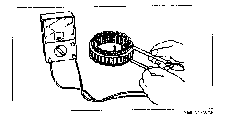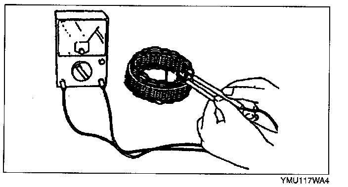 1. Inspect for continuity between the stator coil leads using an ohmmeter.