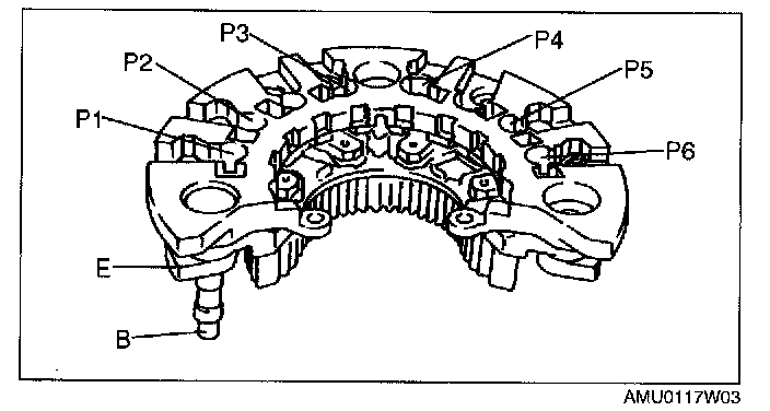 1. Inspect for continuity of the diodes using an ohmmeter.