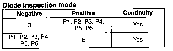 1. Inspect for continuity of the diodes using an analog circuit tester.