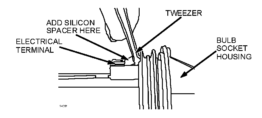 6. Using tweezer or equivalent tool, insert a silicon spacer between bulb socket housing and each electrical terminal.