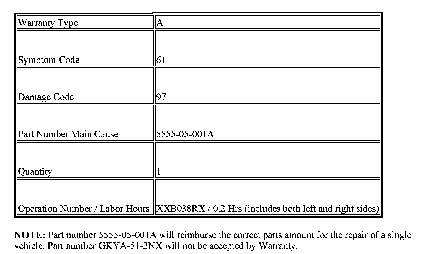 ^ This warranty information applies only to verified customer complaints on vehicles eligible for warranty repair. Refer to the Warranty Wizard for warranty term information.