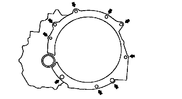 Caution: Loosely and equally tighten the torque converter nuts, then further tighten them to the specified tightening torque.