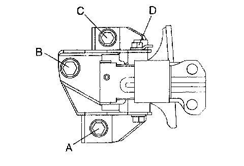 4. Align the hole of the No.4 engine mount bracket with the No.4 engine mount rubber on the vehicle, and lightly tighten bolt D.