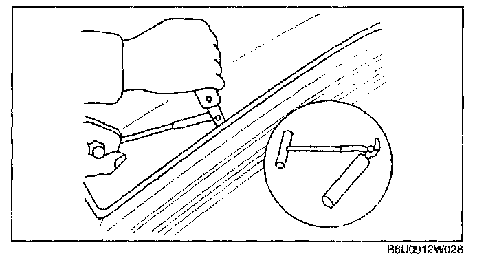 NOTE: For the areas of the sealant that are difficult to cut, use the SST (piano wire) and follow the procedure under "Reusing Windshield."