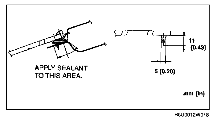 2. If the sealant has come off completely in any one place, apply some primer after degreasing, and allow it approximately 30 minutes to dry. Then put on new sealant to create a 2 mm {0.08 in} layer.