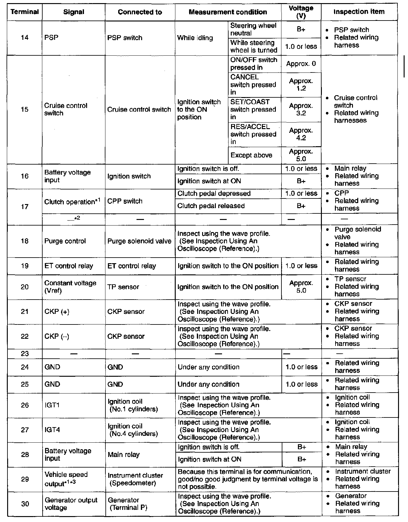 Terminal Voltage Table (Reference) - Terminals (14 - 30):